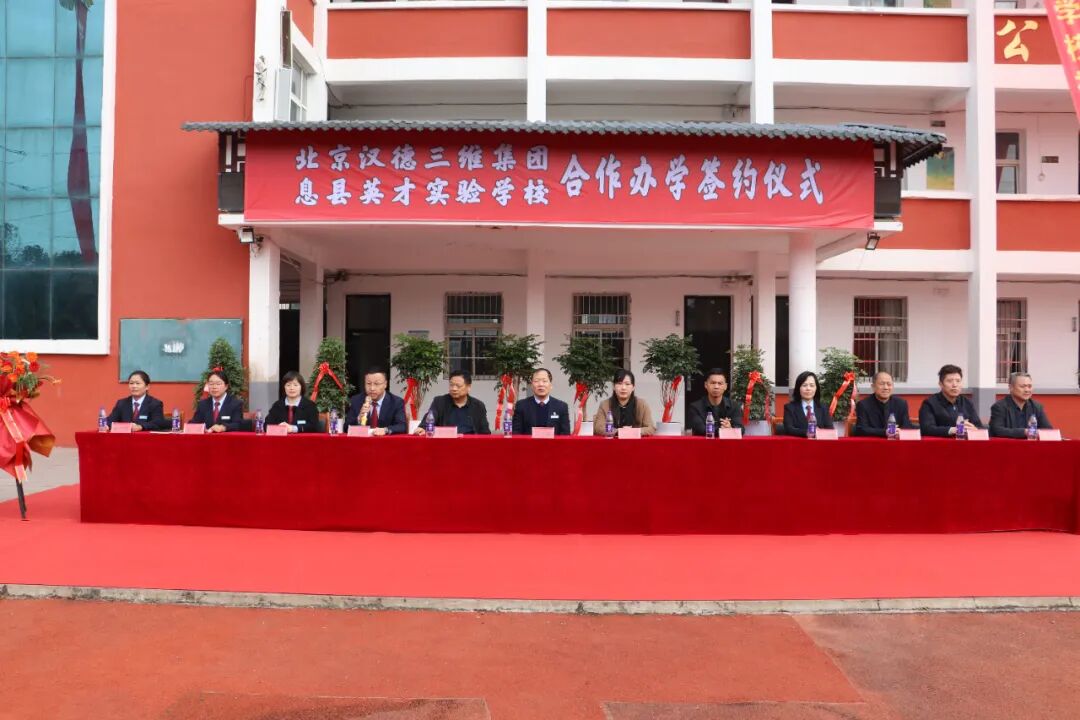 北京汉德三维集团与息县英才实验学校合作办学签约仪式圆满落幕。此次仪式的成功举行,标志着双方合作正式启航,也为息县英才实验学校的未来发展奠定了坚实基础,开启了优质办学的新征程。