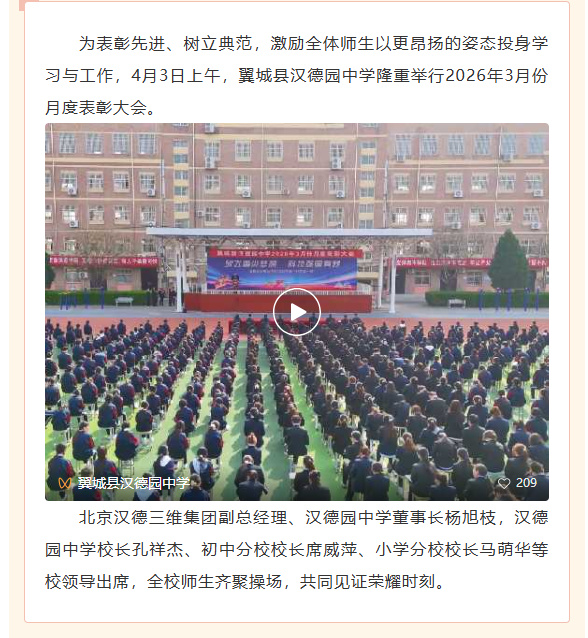 春风催奋进 榜样领前行 | 翼城县汉德园中学2026年3月份月度表彰大会圆满举行