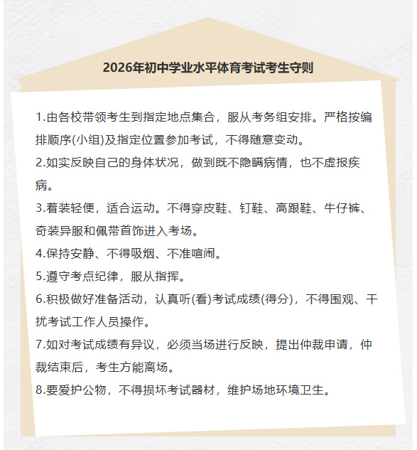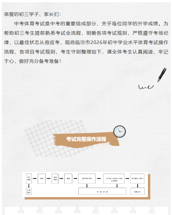 必看!翼城县汉德园中学2026年中考体育考试操作流程、考试规则、考生守则全梳理